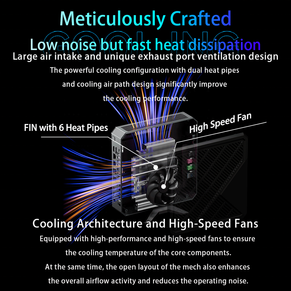 Sistema de enfriamiento:Ventilador de alta velocidad incorporado + Fin con 6 tubos de calor