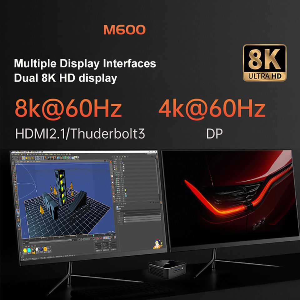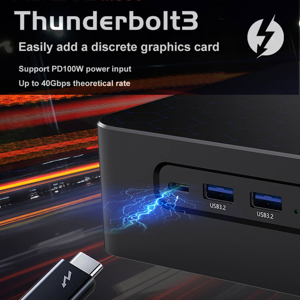 Puerto de visualización:1 x Mini DP 1,4, 1x HDMI 2,1, soporte 8K @ 60Hz,1 x Thiderbolt3 8K @ 60Hz