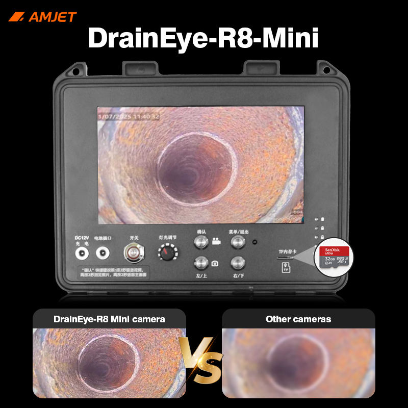Cámara de Inspección de Tuberías Profesional AMJET DrainEye-R13-Max, 1080P, Cable de 50m, para Localización de Tuberías Industriales y Limpieza Profesional
