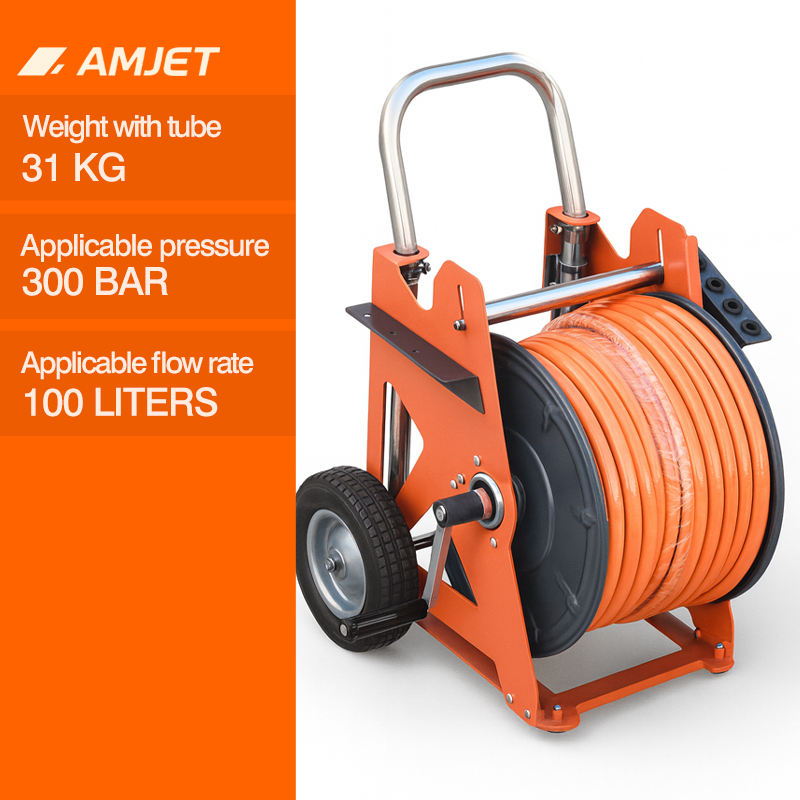 Carrete de Manguera Retráctil Portátil AMJET | Con Manómetro y Válvula de Agua de Tres Vías | Para pedidos sin manguera, totalmente funcional