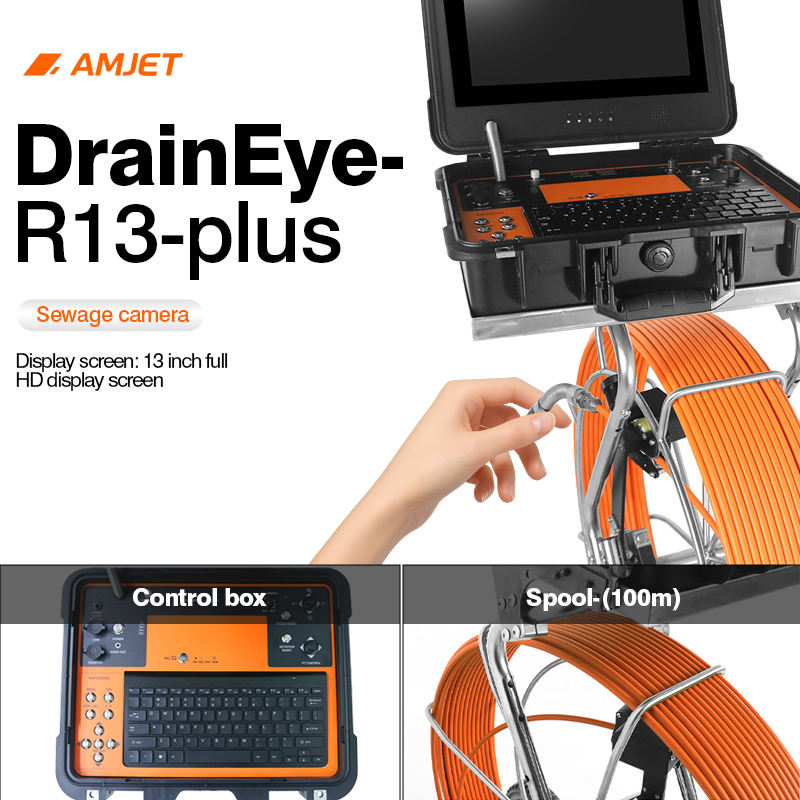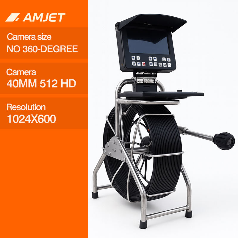 Cámara de Inspección de Tuberías Profesional AMJET R10-pro, 1080p, Cable de 60 Metros, Cámara a Color, Localizador de 512HZ para Inspección