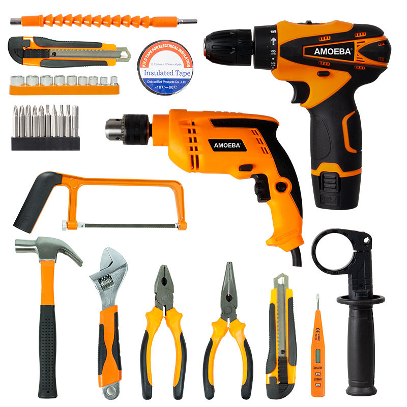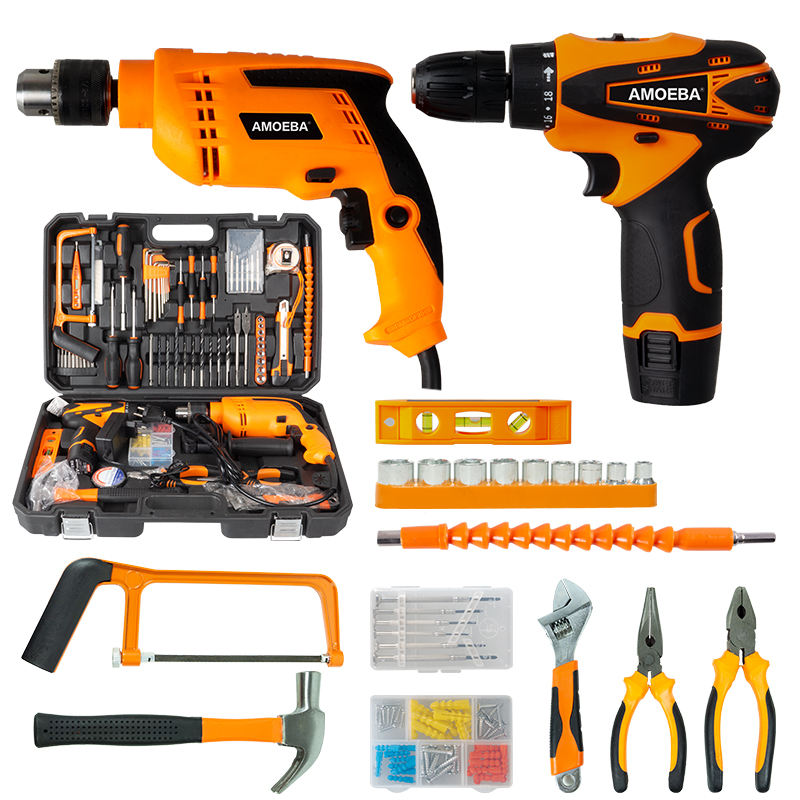 Juego de herramientas eléctricas para el hogar de la marca AMOEBA, juego de taladro a precio barato con accesorios, juego de herramientas eléctricas de litio más vendido