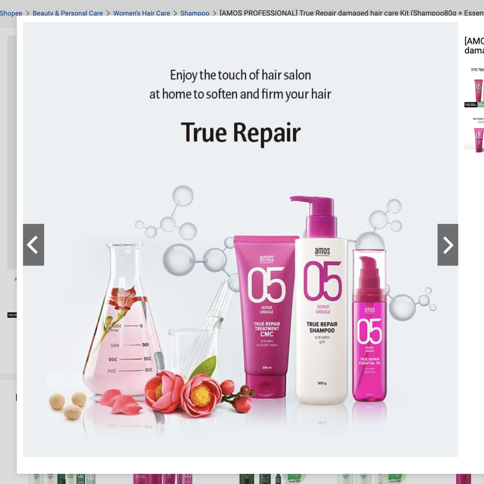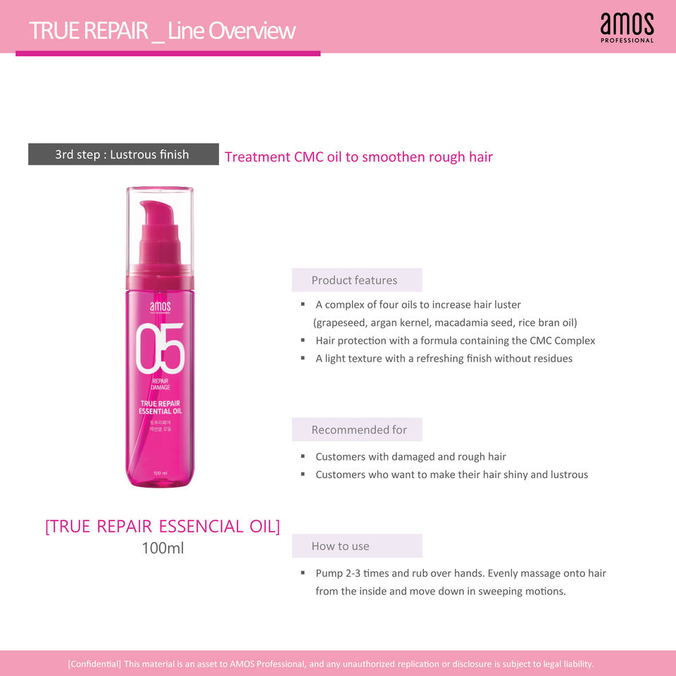 [AMOS PROFESSIONAL] Set de Cuidado para Cabello Dañado Línea True Repair (Champú 500ml + Tratamiento CMC 200ml + Aceite Capilar 100ml)