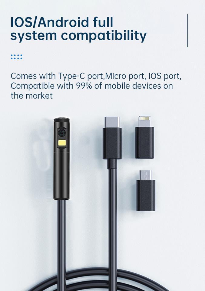 Endoscopio AN112D de Doble Lente para iPhone y Android, Lente de 8mm, Cámara de 2MP 1080P, Boroscopio IP67 con Puerto de Iluminación para IOS y Android