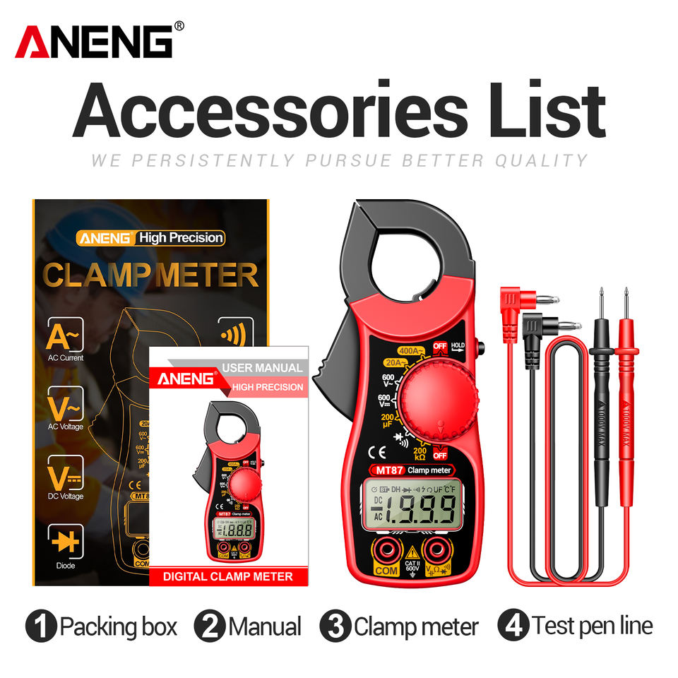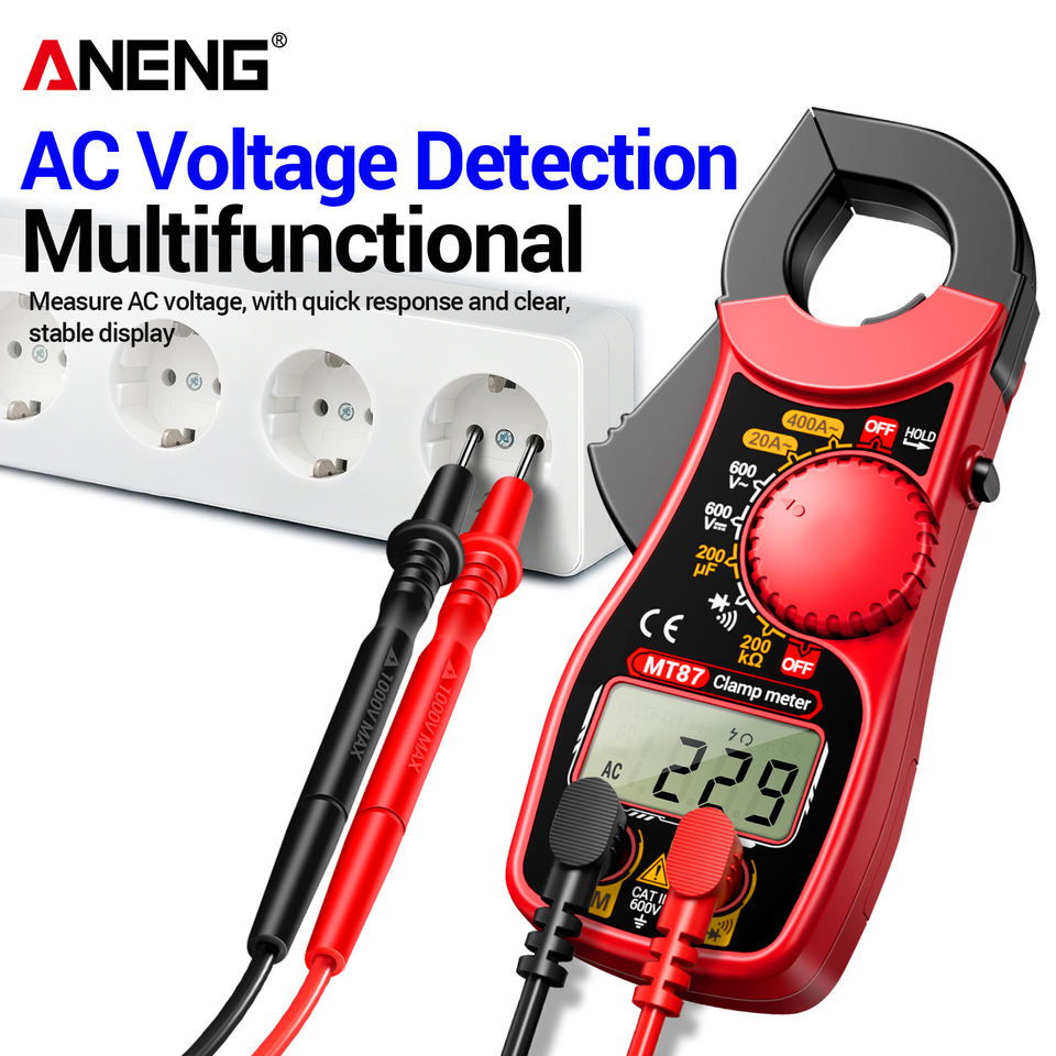 Multímetro Digital de Pinza ANENG MT87 con Pantalla LCD, Medidor de Corriente CA/CC, Voltímetro, Diodo, Resistencia, Multitest CAT II 600V 32mm