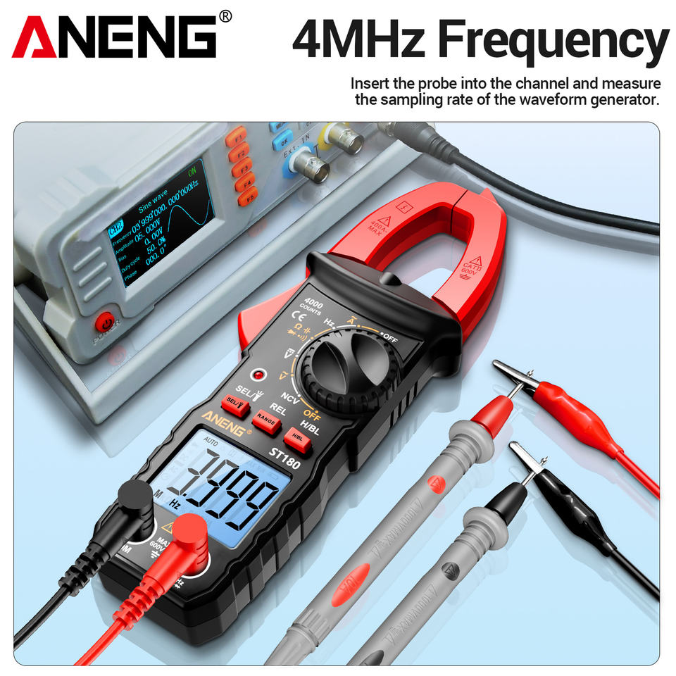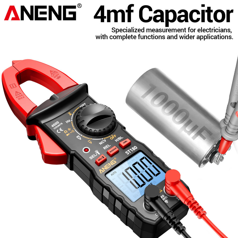 Multímetro Digital de Gancho ANENG ST180 de 4000 Cuentas, Medidor de Corriente CA, Probador de Voltaje, Amperímetro para Automóvil, Hz, Capacitancia, NCV