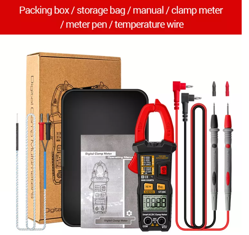 Pinza Amperimétrica Avanzada ANENG ST194, Multímetro True RMS con Pantalla Digital, 6000 Lecturas, Alta Precisión, Voltaje 600V AC