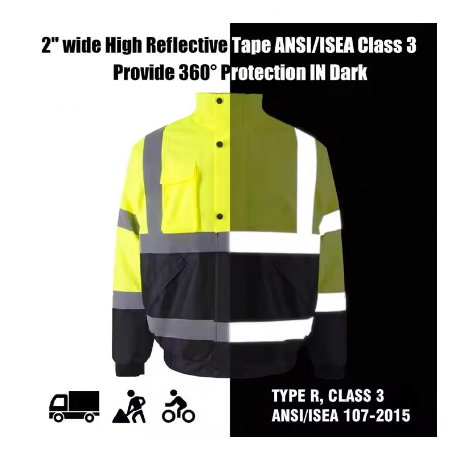 Sudadera Térmica Reflectante ANSI Clase 2 con Capucha Desmontable, Sudadera de Seguridad de Alta Visibilidad