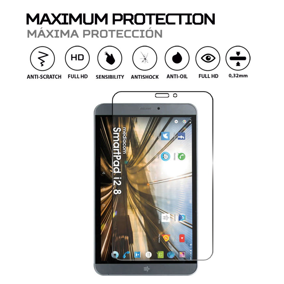 Protector de pantalla ANTISHOCK para tableta Mediacom SmartPad I2 8, legibilidad y durabilidad mejoradas