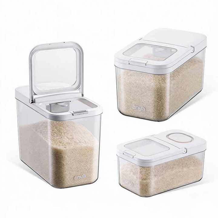 Contenedor de Almacenamiento de Arroz y Harina de Plástico PET Grande ANYA, Dispensador Hermético Estrecho para Granos y Cereales, Organizador de Despensa de Cocina