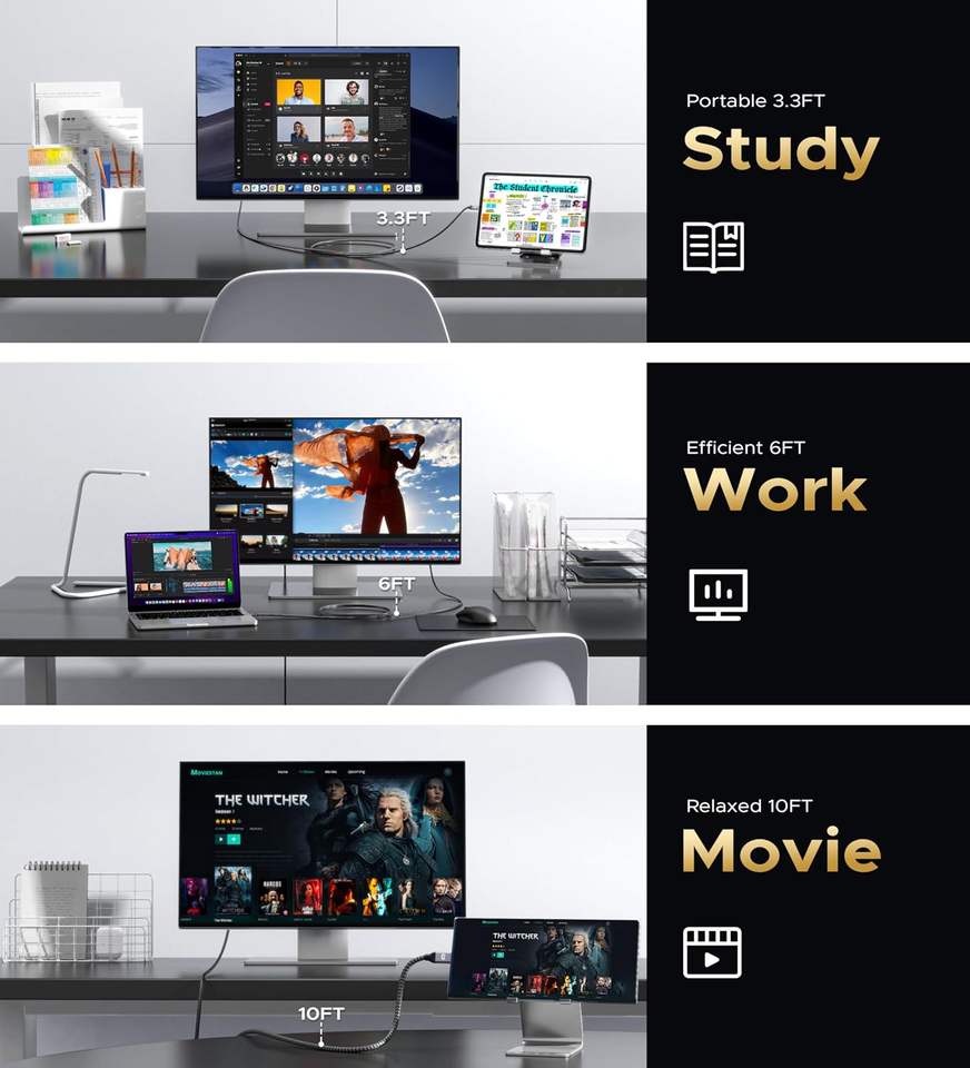 AOC 50m Fibra óptica USB C a HDMI Cable 4K/60HZ3D Compatible Smartphone Laptop Dispositivos multimedia Monitor de video S23 PS4 PS5