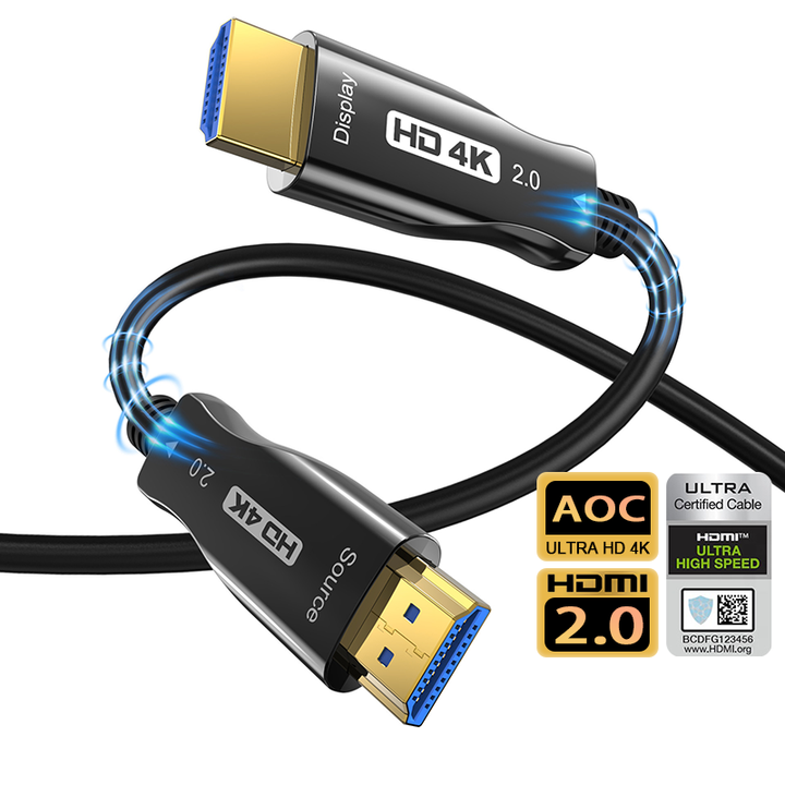 Cable de fibra óptica AOC HDMI 4K 120Hz/60Hz 2,0 20m/200m/20sm/15M/300m/50m/100M combinación de chaqueta de PVC blindaje para reproductores de DVD