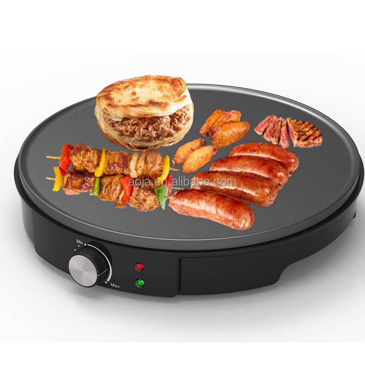 AOJA Factory Crep Maker Plato de cocina de gran tamaño Perilla de control de temperatura ajustable Indicadores de luz listos para potencia Pies antideslizantes