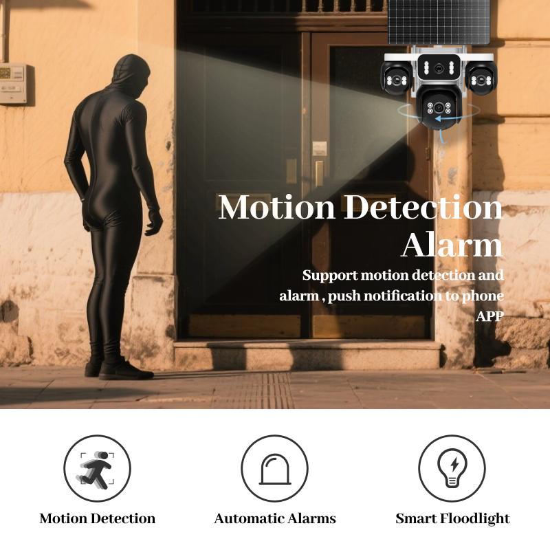 Humanos de seguimiento de movimiento, Visión nocturna, Detección de movimiento, Impermeable / a prueba de mal tiempo, Construido-En sirena, PAN-TILT, De Audio de dos víasCaracterísticas especiales