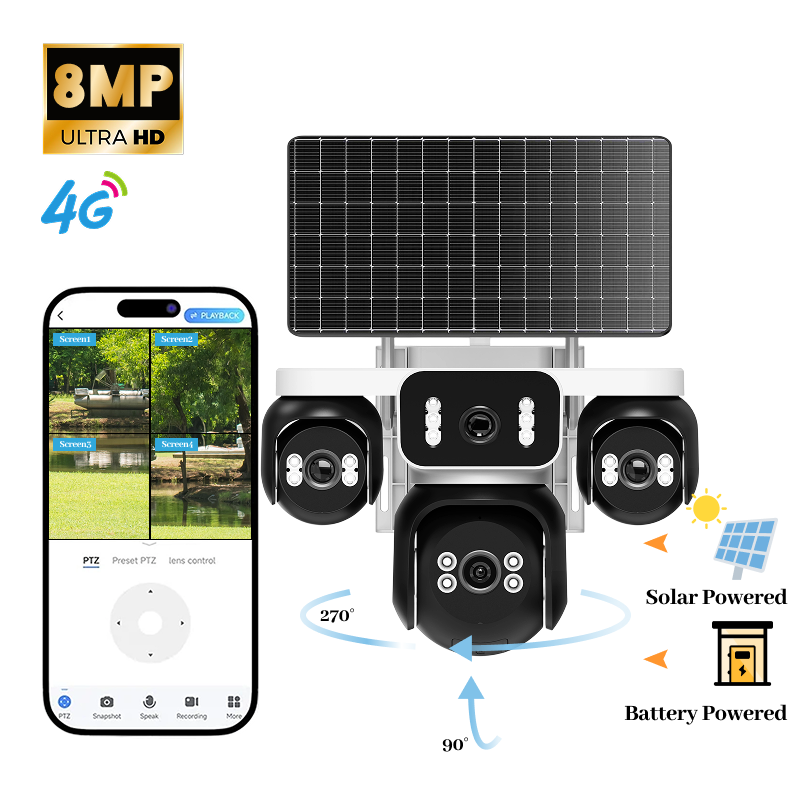 AOV Parpadeo Cámara Panel Solar 8mp Baterías 4G Sim Cámaras Ai Cámara de Seguridad Detección Humana Seguimiento Inteligente Ptz Exterior