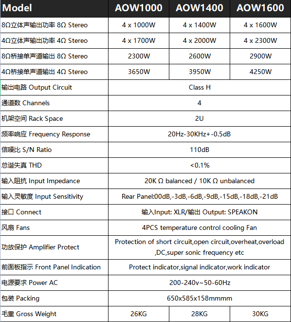 Amplificador de Potencia AOW de 4 Canales, Amplificador de Clase H de Alta Calidad para Uso Profesional en Escenarios de Audio