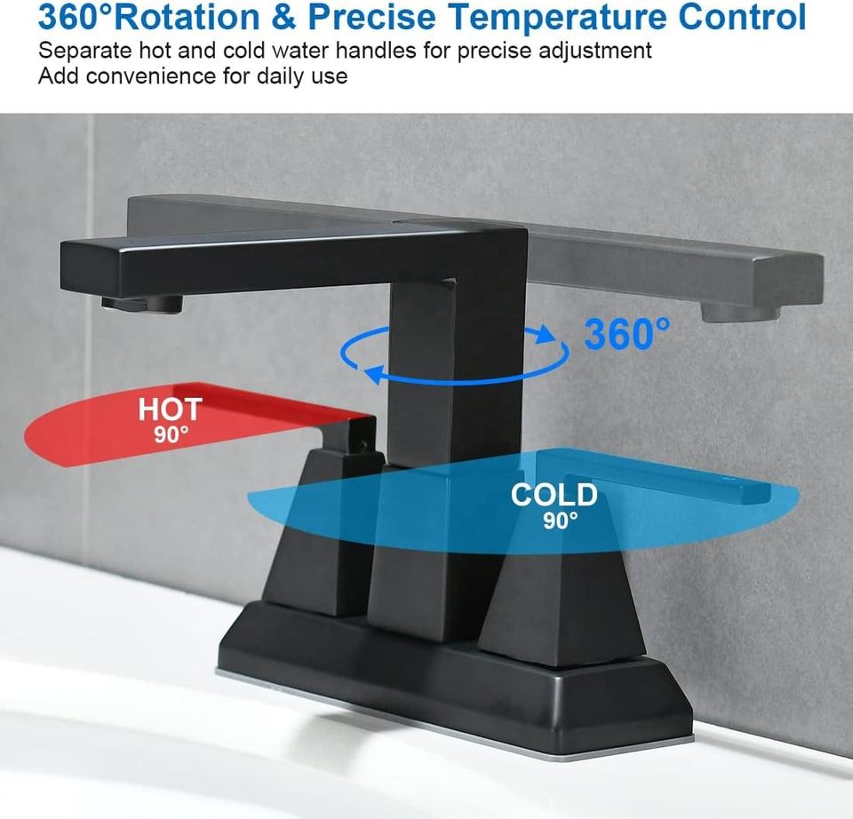 Grifo AOWE de Alta Calidad con Diseño Moderno, 2 Manijas, Montaje en Cubierta con Distancia entre Ejes de 4 Pulgadas, Sin Contacto, Cerámica, Aleación de Zinc Ennegrecida, Garantía de 5 Años