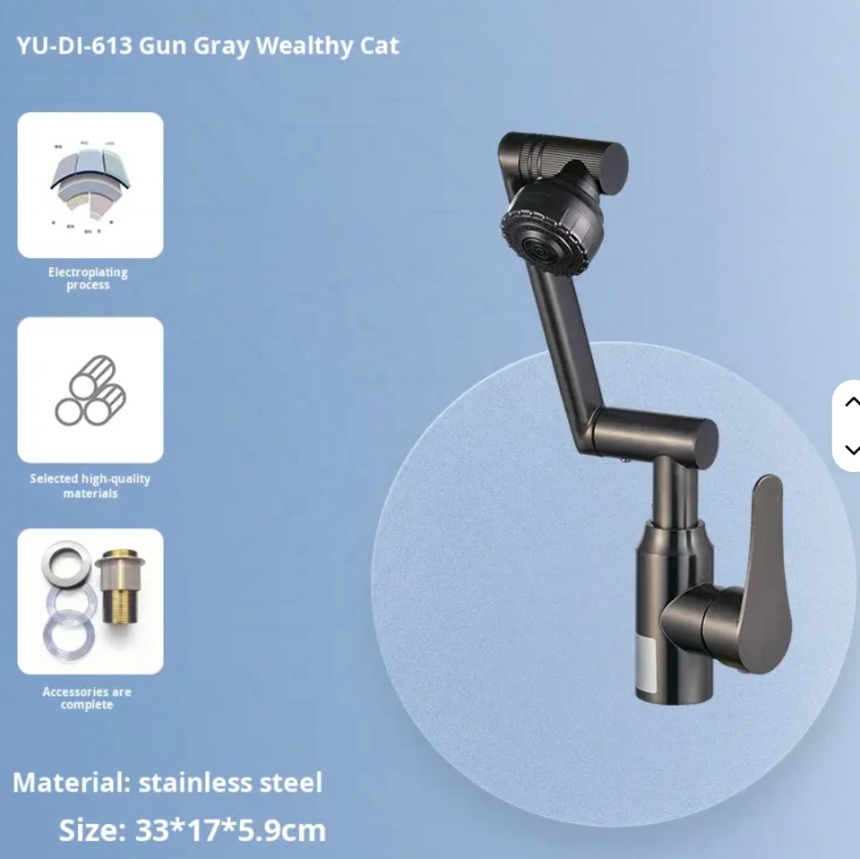 Grifo de Cocina Universal Giratorio de Cobre AOWE, Diseño Moderno y Simple, Monomando de Agua Fría y Caliente con Válvula de Cerámica, Montaje en Encimera