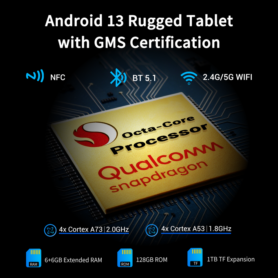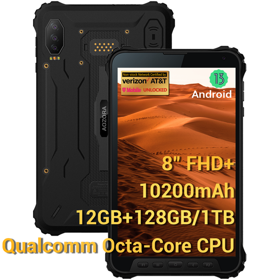 AOZORA K8 Tableta Industrial Resistente con Android, Pantalla de 8 Pulgadas, IP68 Resistente al Agua, CPU Qualcomm, 6GB de RAM, Cámara Macro, NFC, GPS, para Adultos/Niños