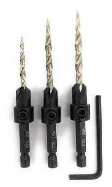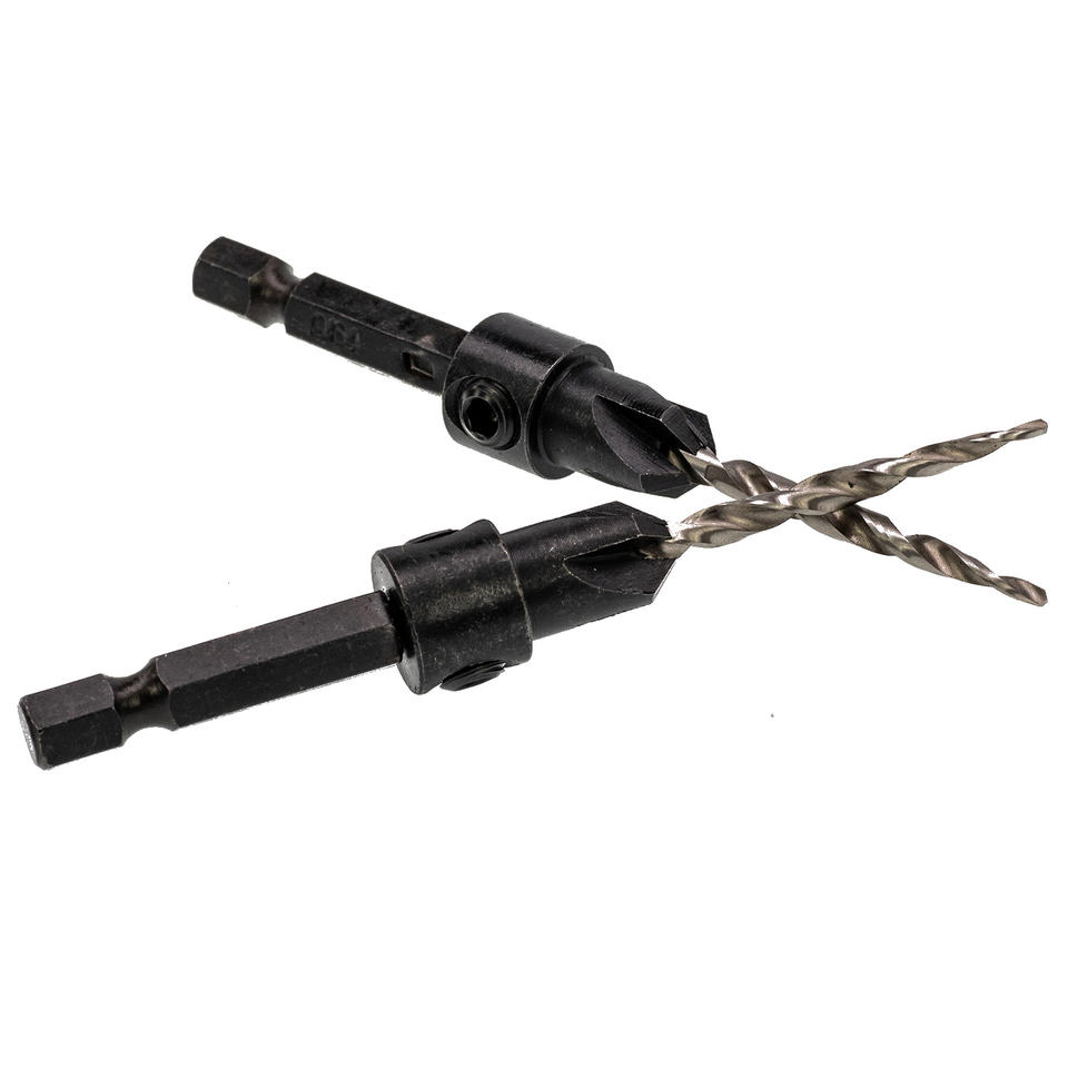 Juego de brocas avellanadoras cónicas ajustables APEX HSS de 9/64 pulgadas con vástago hexagonal de 1/4 para trabajar la madera