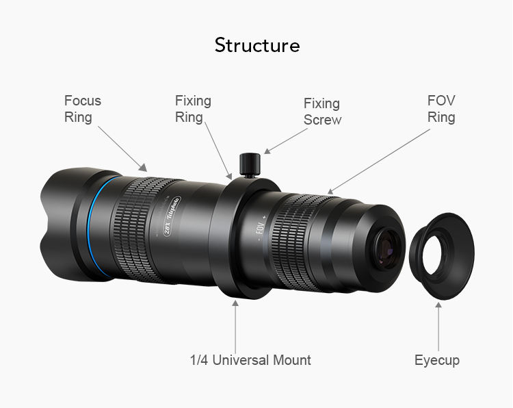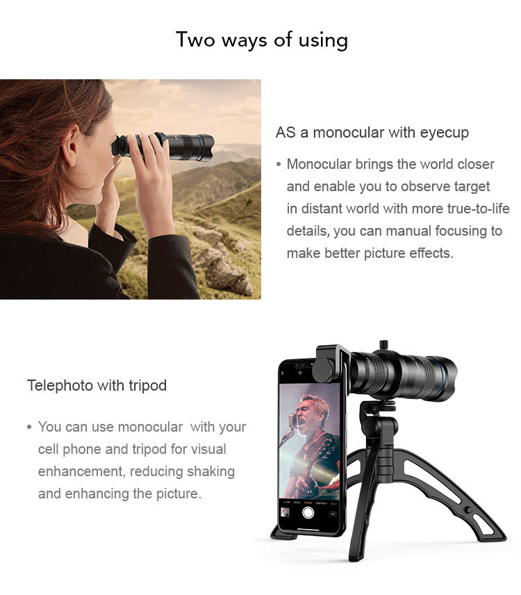 APEXEL Envío Gratuito Clip para Cámara de Teléfono Inteligente Lente Telescópica 28X para iPhone y Android