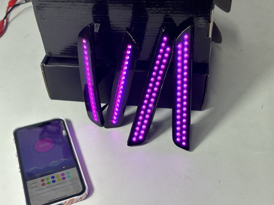 Luz LED de Marcador Lateral para Parachoques Delantero y Trasero con Control de Flujo de Color RGB por APP para Mustang 2010-2014, Paquete de 4