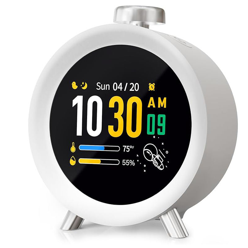 Reloj Despertador Inteligente con Control por Aplicación para Niños, 10 Sonidos de Ruido Blanco, Entrenador de Sueño, Herramienta de Gestión del Tiempo, Visualización del Clima