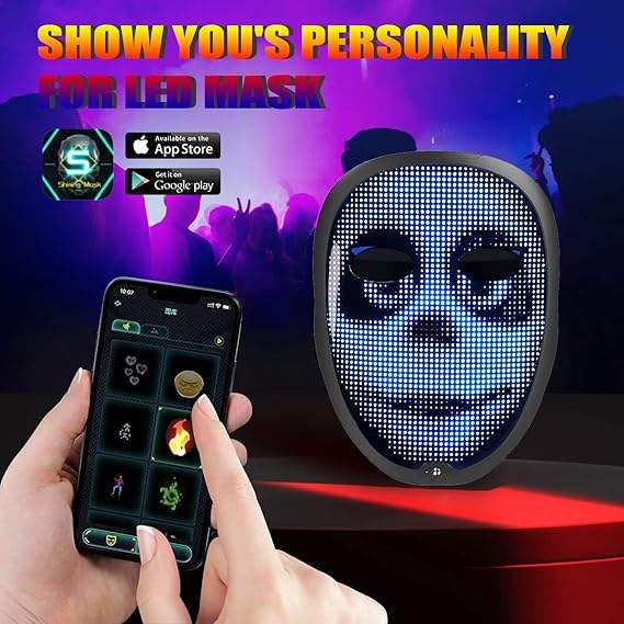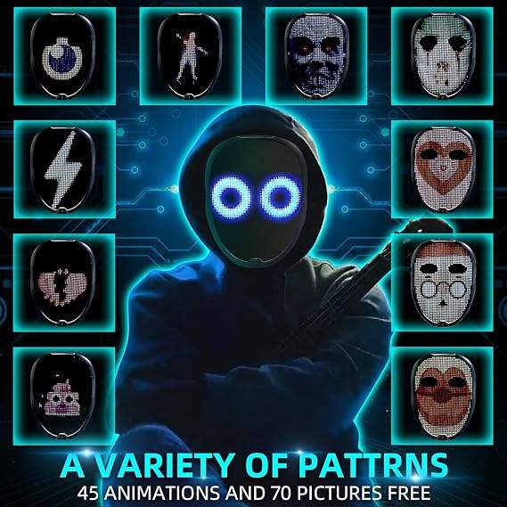 APP Control Smart LED Mascarillas Programable Cambio DE CARA DIY Foto para fiesta Pantalla LED Máscara de luz para Halloween