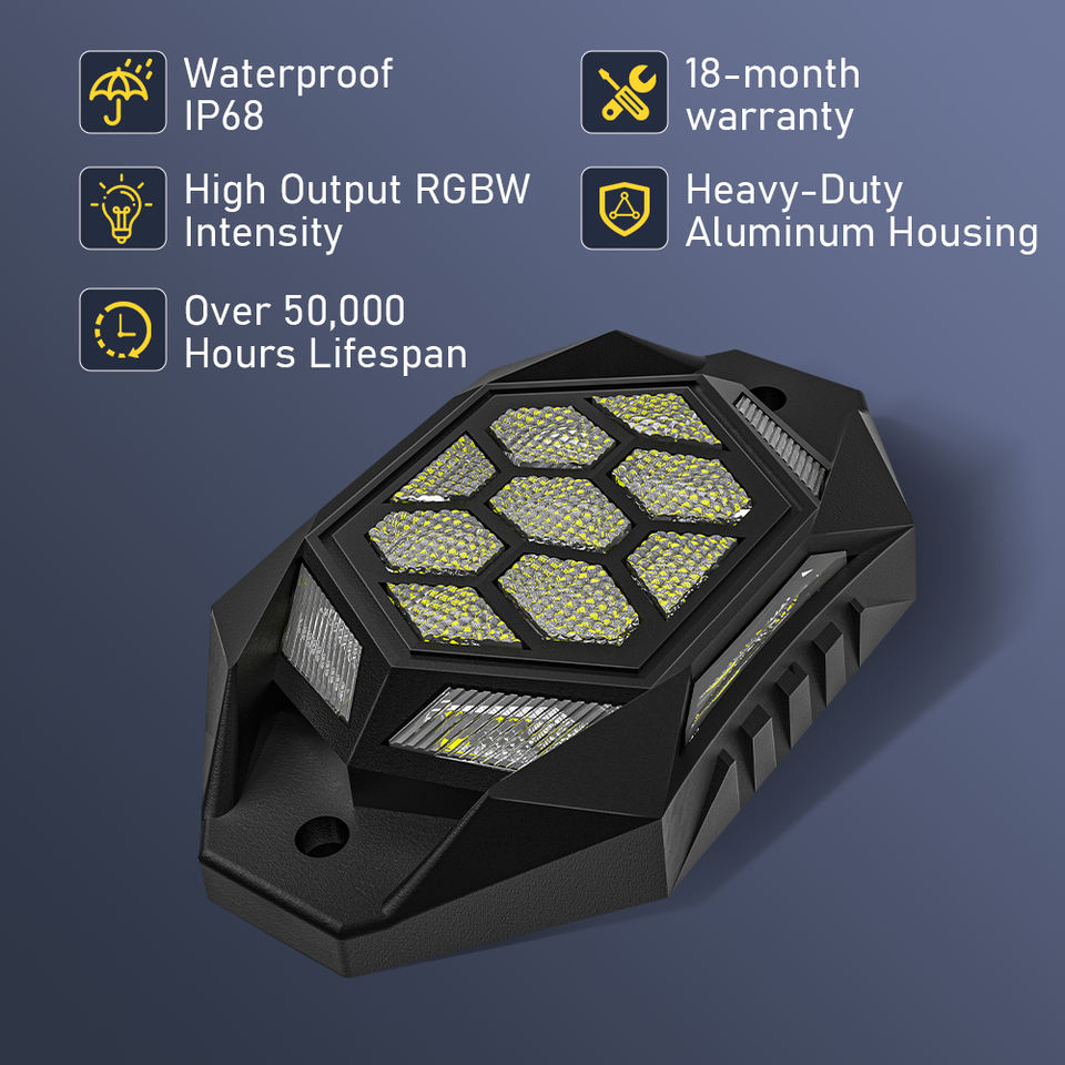 APP Control remoto RGBW LED Rock Lights4 8 12 16 Pods con luz de freno Señal de giro IP68 Underglow Rock Neon Light Kits 121 modos