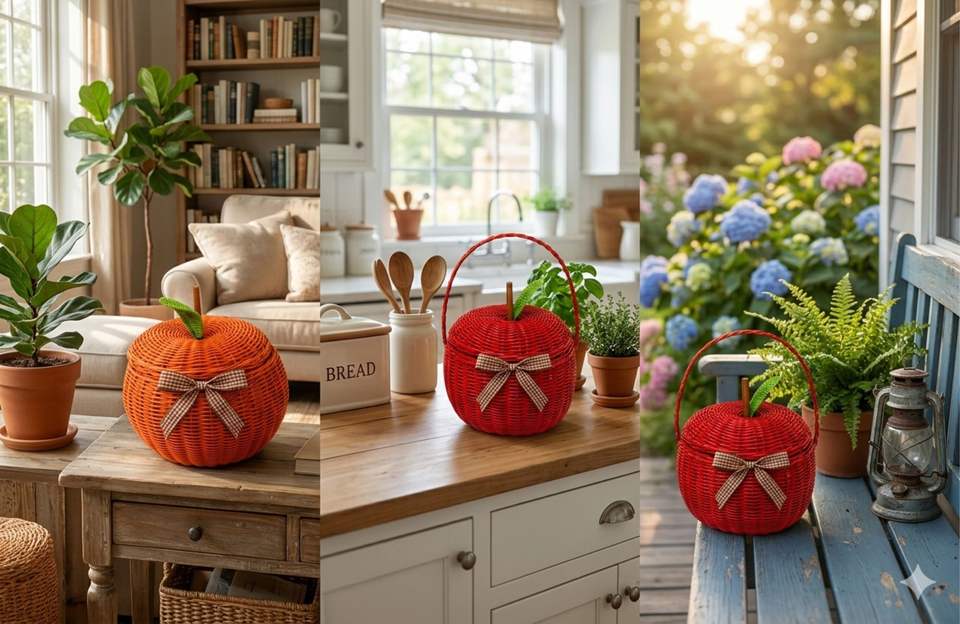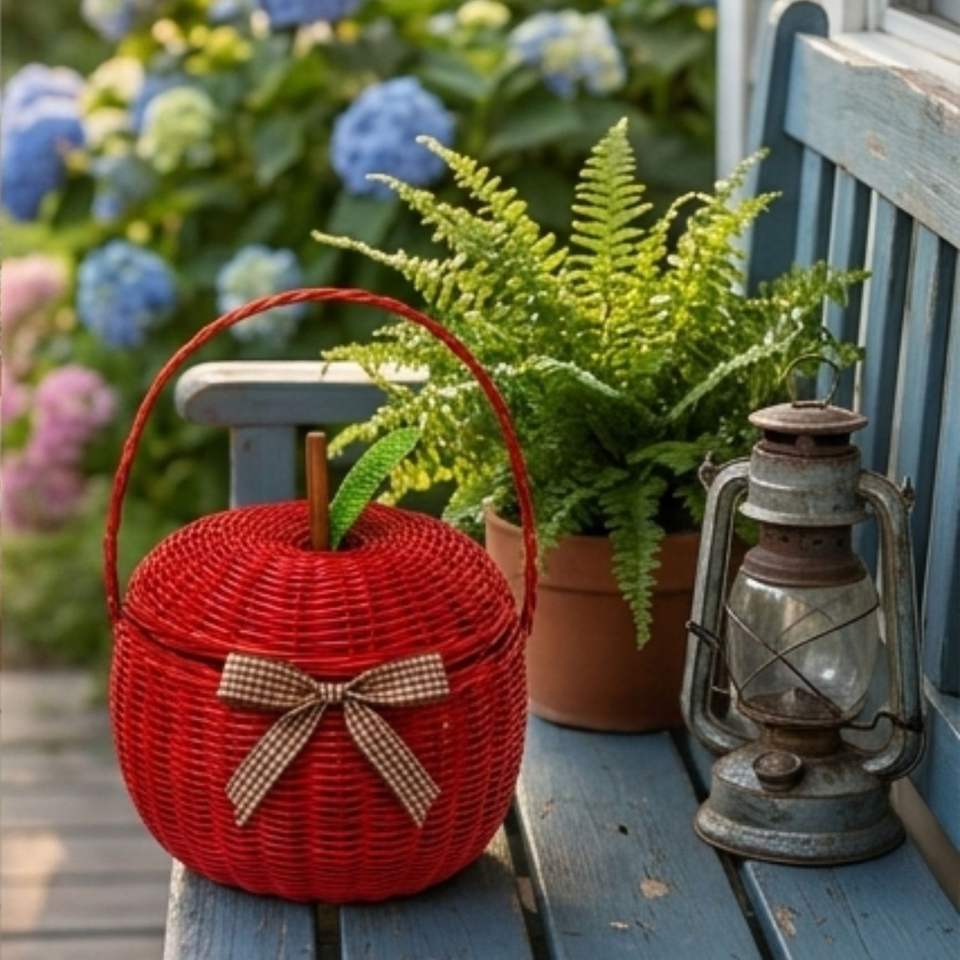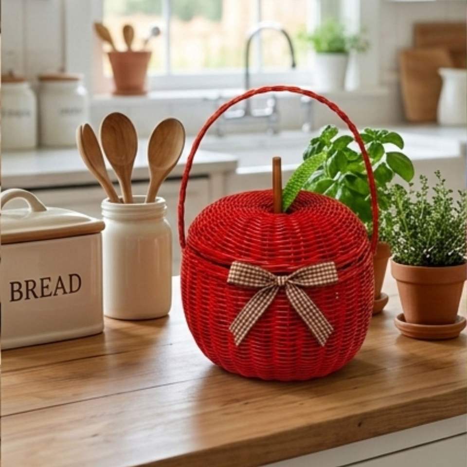 Cesta de Mimbre de Manzana Hecha a Mano