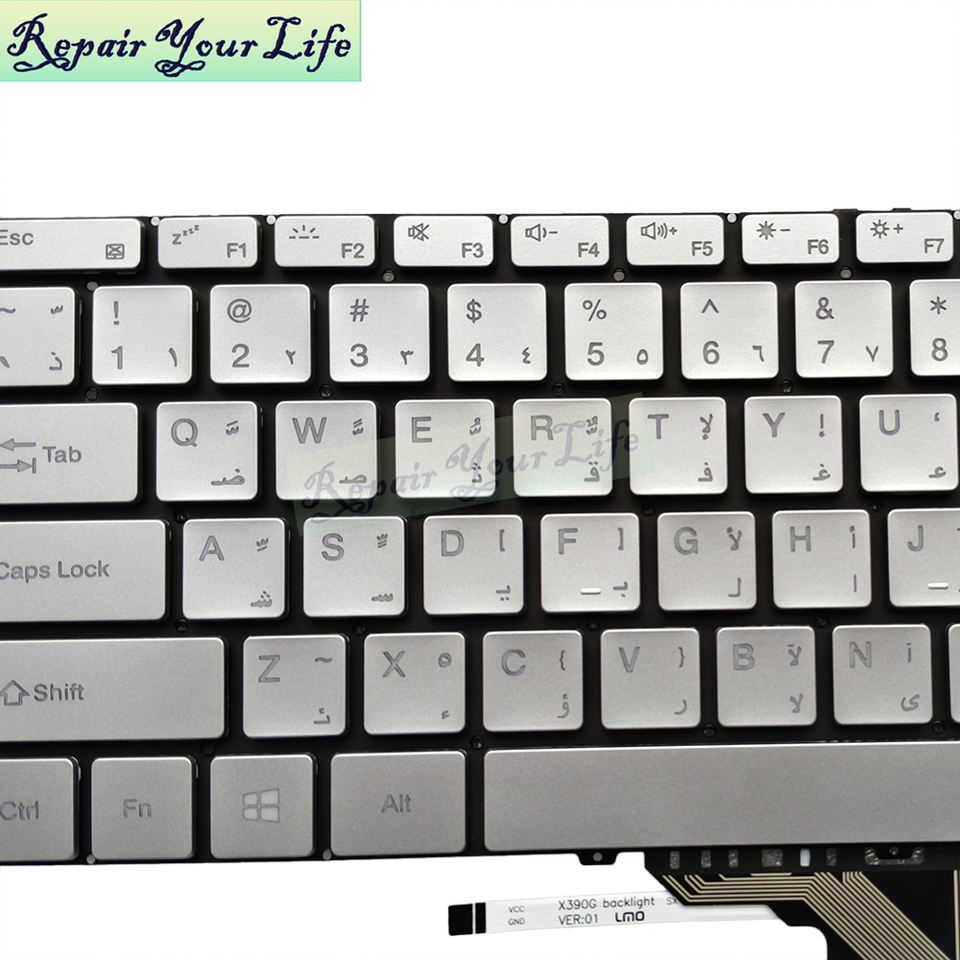 Teclado de ordenador portátil retroiluminado árabe AR para BMAX MaxBook Y13 MB30010010 RT132HS X390G teclado de repuesto plateado Venta caliente