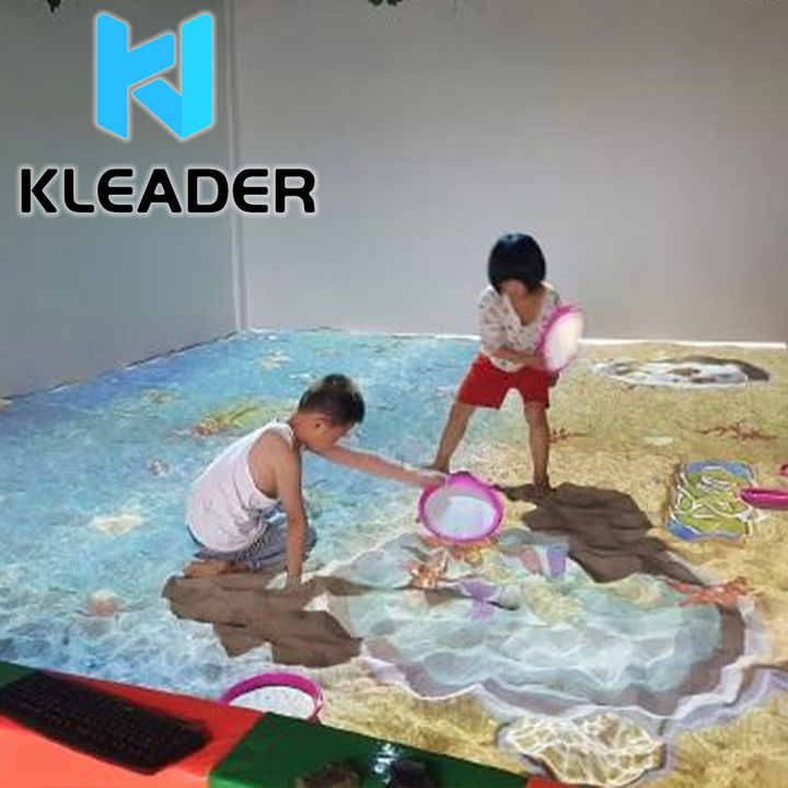 Proyección interactiva de juegos para niños, proyector de pantalla de suelo, arte 3d virtual, Playa mágica