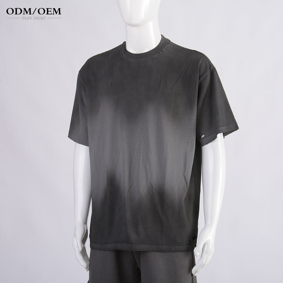 Camiseta de Hip Hop de Manga Corta con Cuello Redondo y Lavado Ácido para Hombre, Talla Grande AR035, 100% Algodón, Tejido Grueso, Ecológico