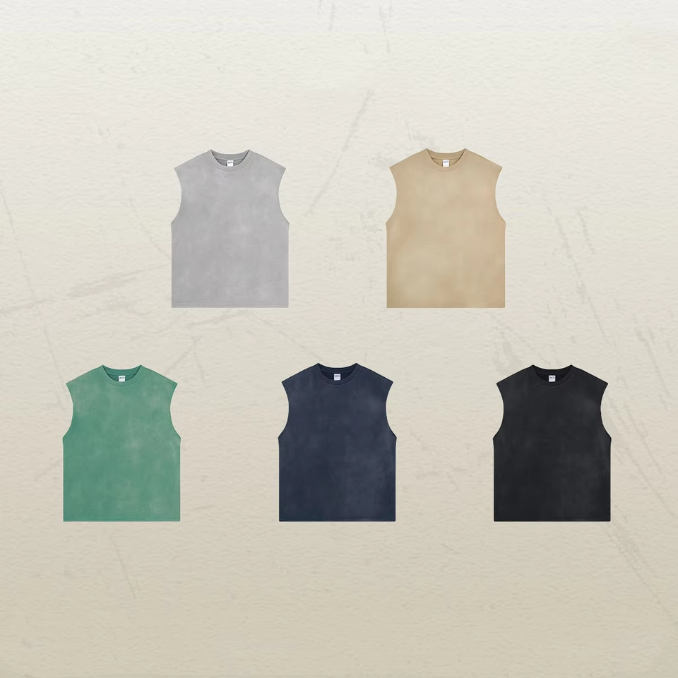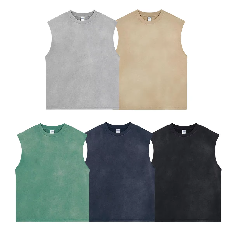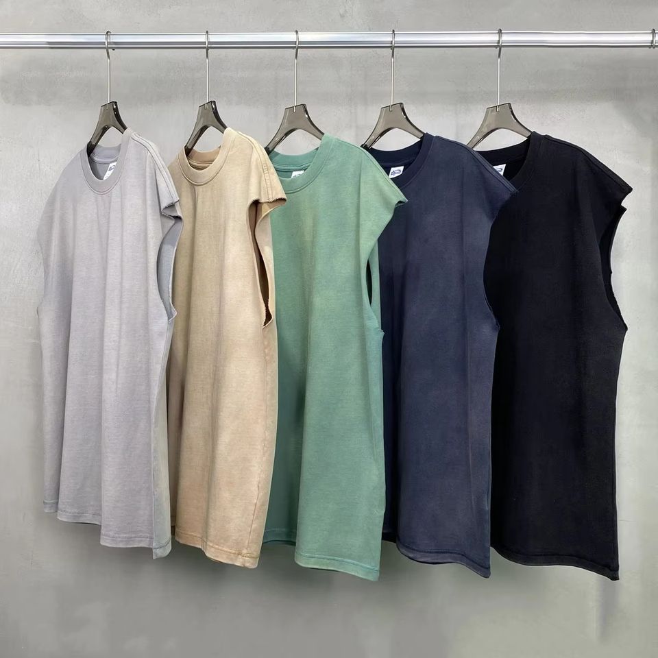 Chaleco de Algodón Ecológico Tejido con Logo Oversize y Hombros Caídos AR716, Lavado Ácido Vintage para Hombre