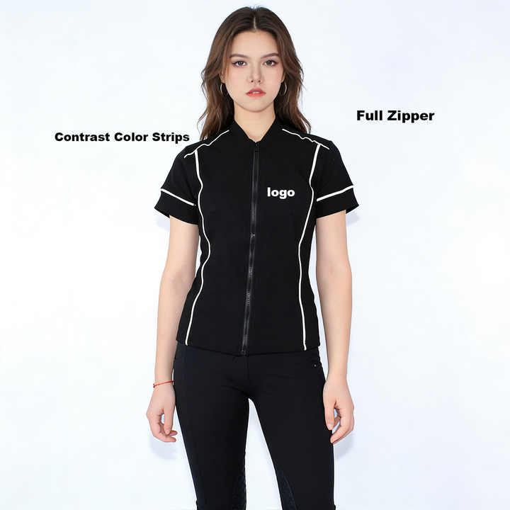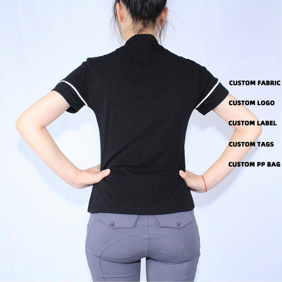 Camisa Ecuestre de Manga Corta para Mujer y Hombre, Negra, Refrigerante, para Competición, Venta Directa de Fábrica ARLAN
