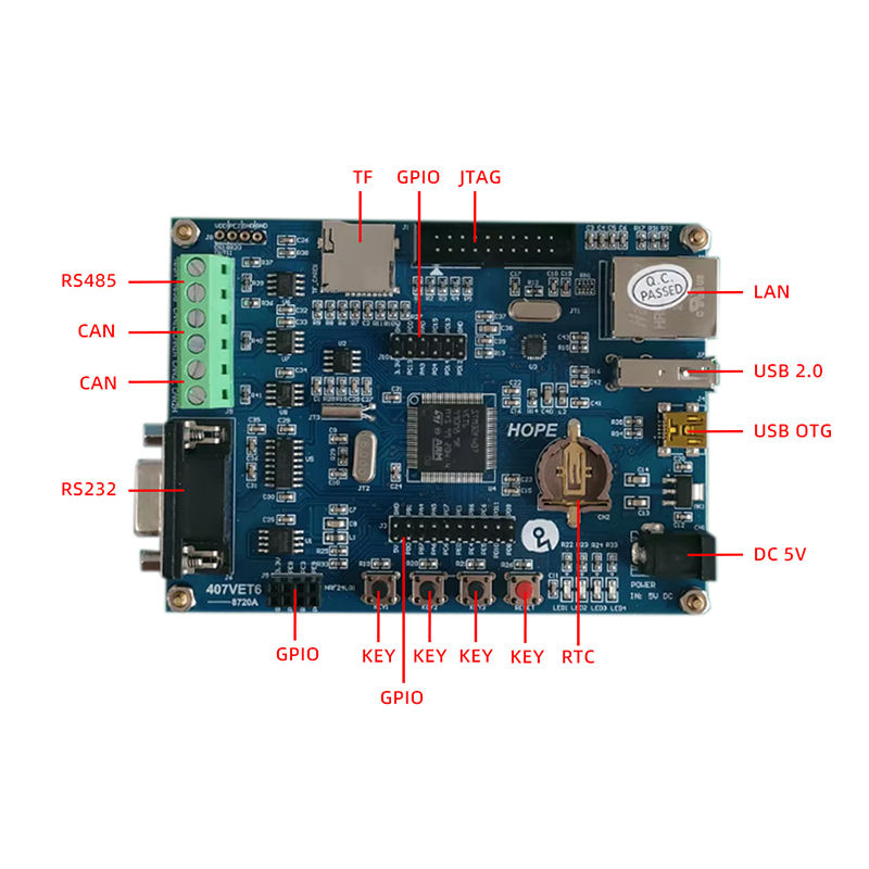 Placa de Desarrollo ARM STM32F407VET6 con RS232, RS485, Doble CAN y Ethernet