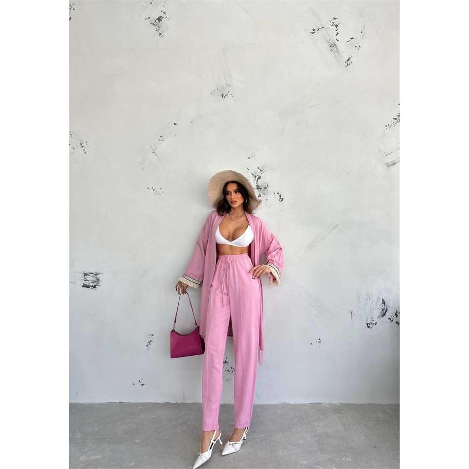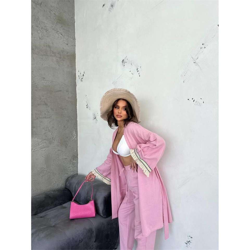 Conjunto de Dos Piezas Rosa para Mujer ARM, Kimono Floral con Flecos, Talla XS/XS, Top Corto por Encima de la Rodilla, Atuendos para Club, Mínimo. Pida 3 Piezas