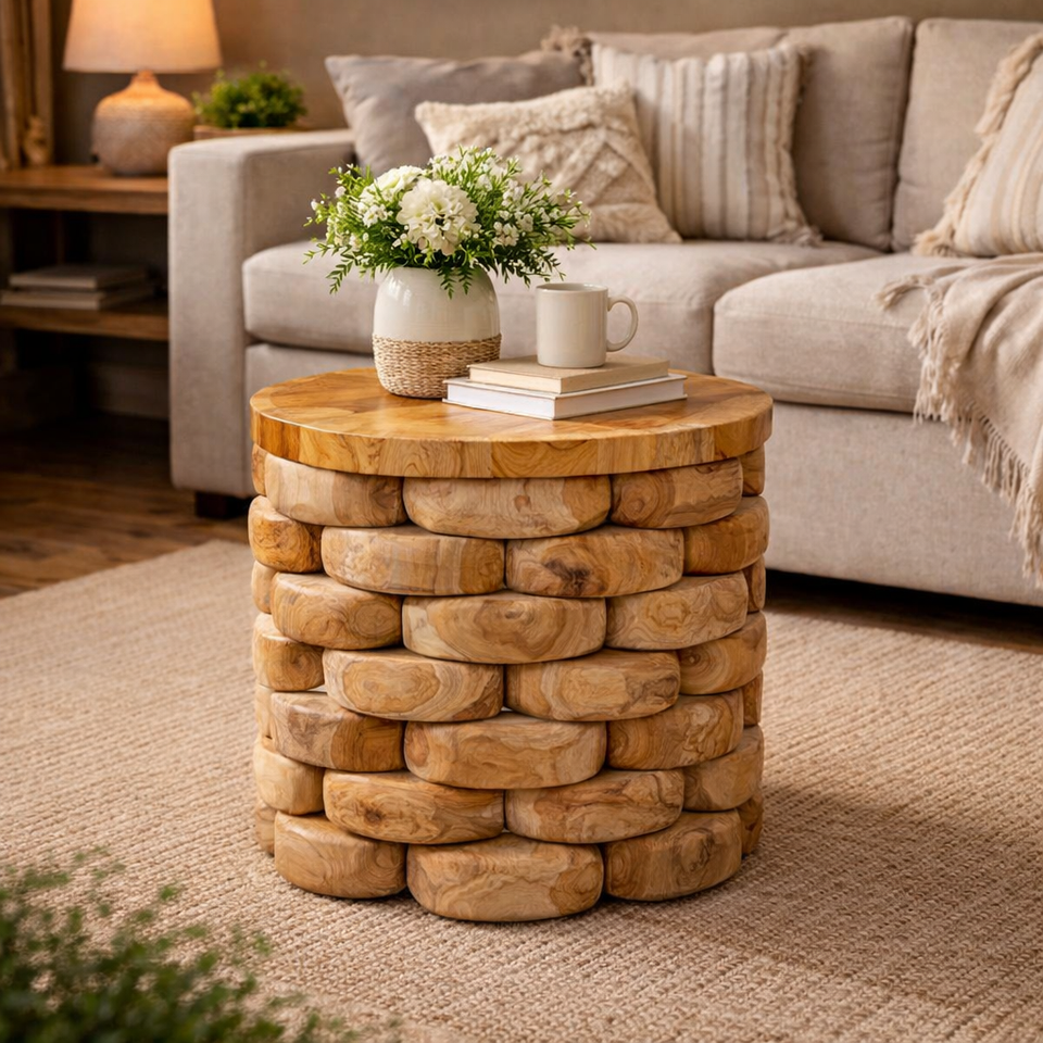 Taburete ARTERRA Premium Ecológico, Rústico, Hecho a Mano con Madera de Teca, para Apartamentos, Hoteles y Almacenes