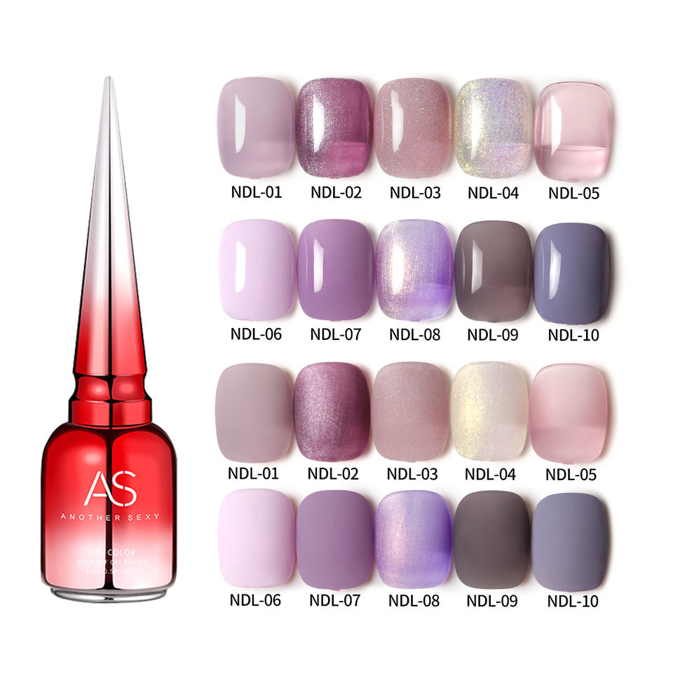 Como 10-Color Glitter 15ml Gel Esmalte de uñas Etiqueta privada Barnices UV semipermanentes Esmalte de uñas OEM con remojo púrpura