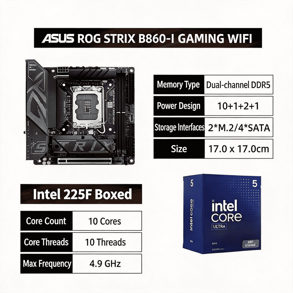 Placa Base Mini ITX para Juegos AS US ROG B860-I WIFI 225F en Caja con Paquete de CPU