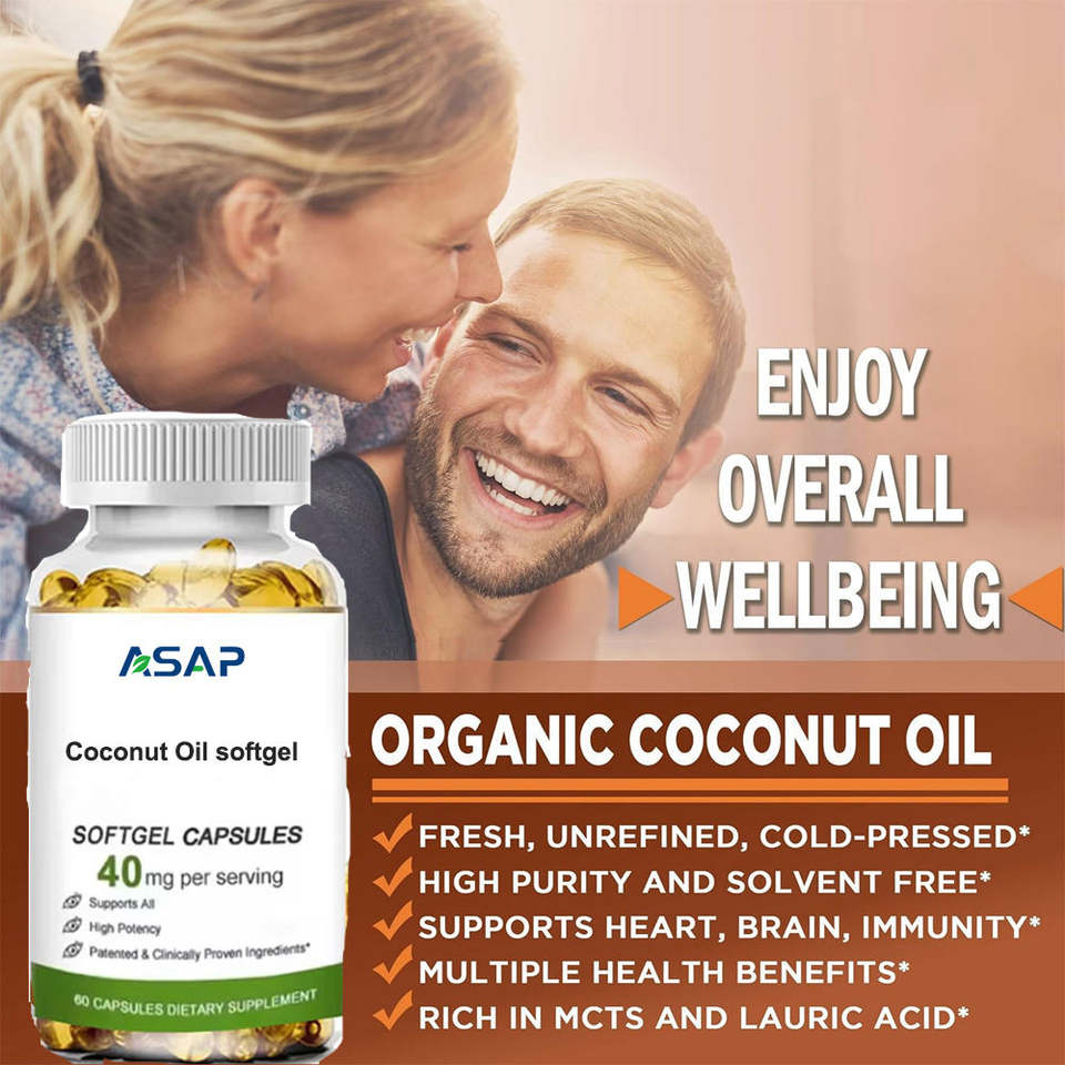 Cápsulas de Gel Suave con Extracto de Aceite de Coco Orgánico OEM ASAP, Suplementos de Grado Alimenticio para Adultos, Marca Privada