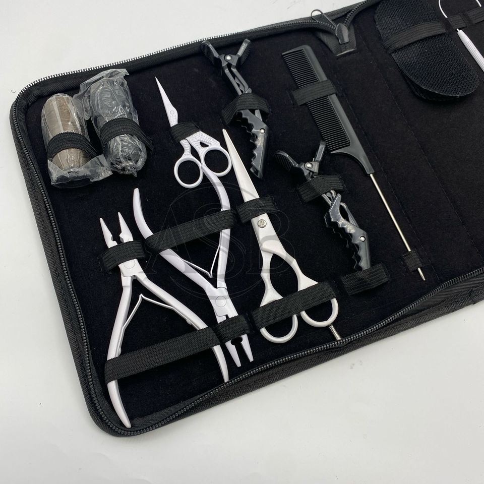 Kit de herramientas de extensión de cabello blanco mate ASB, alicates de microcuentas de acero inoxidable, tijera de corte de cabello para Clip de algodón de 5mm