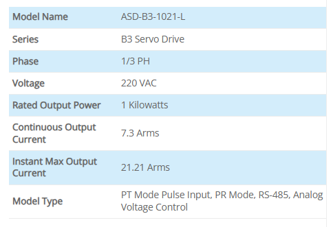 Controlador de Servoaccionamiento Monofásico Compacto Industrial Delta ASD-B3-1021-L de 1kW, Serie ASDA-B3