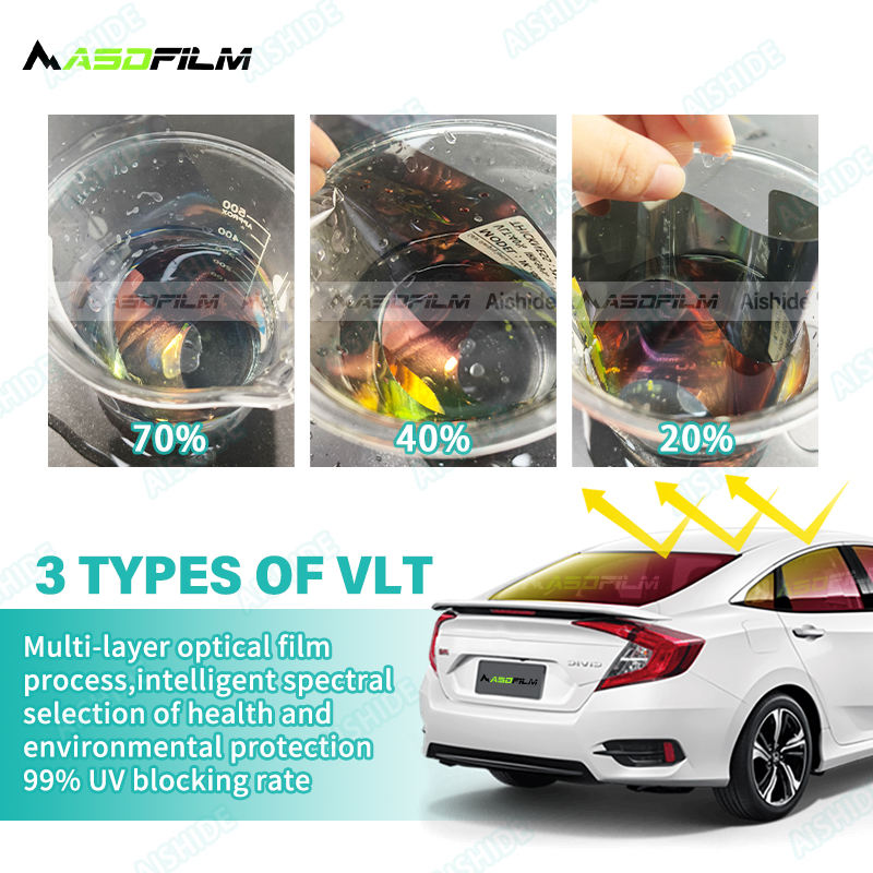 ASDFILM-Tinte de ventana para coche, película óptica de Jingrui que cambia de Color expuesta al agua, 20 40 70, camaleón 99%, película UV