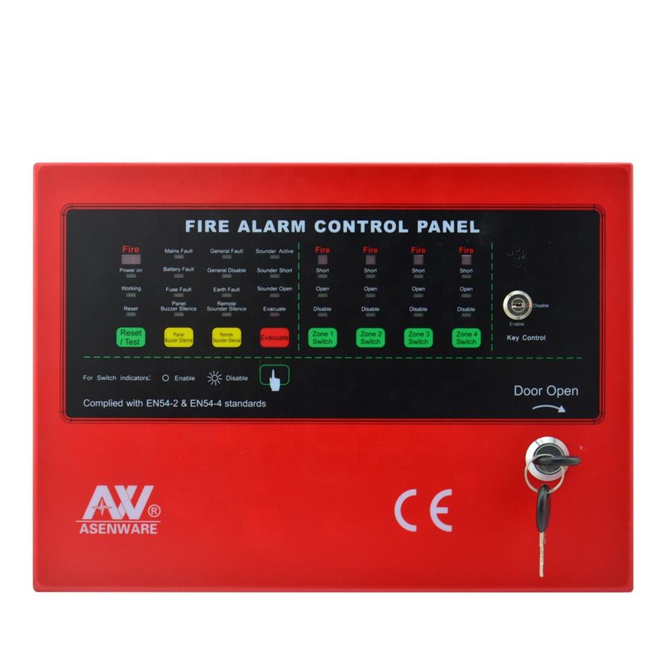 Panel de Control de Alarma Contra Incendios Convencional Cableado de 4 Zonas y 2 Entradas ASENWARE