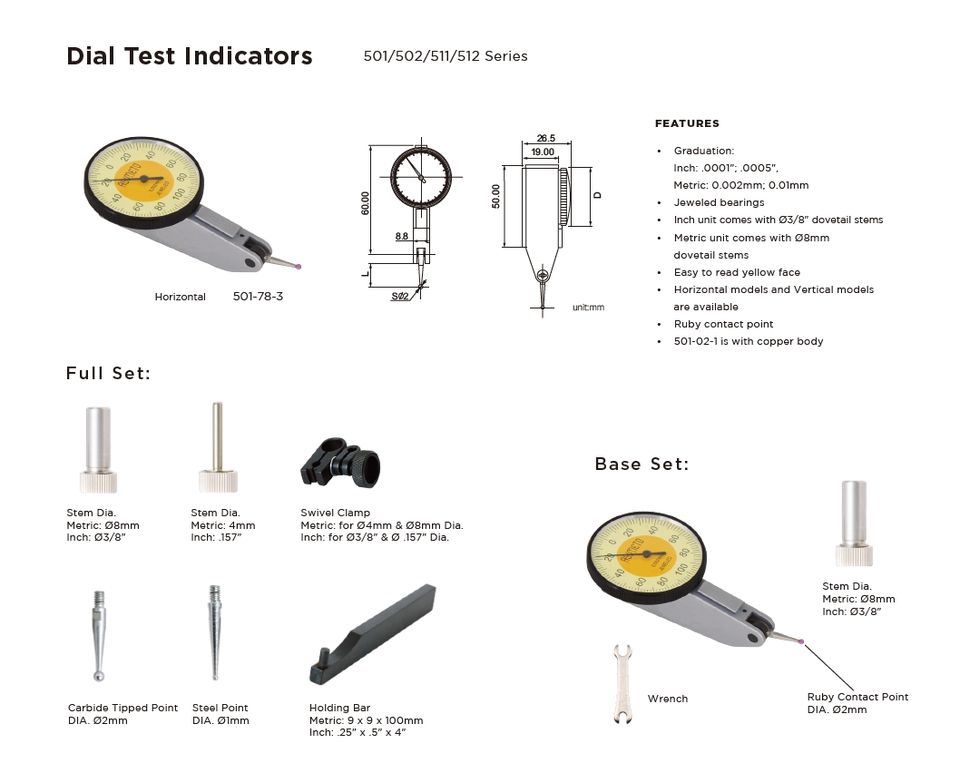 ASIMETO - Indicador de Precisión con Dial Mecánico de Alta Precisión de 0.01 mm para Control y Precisión en el Mecanizado de Taller