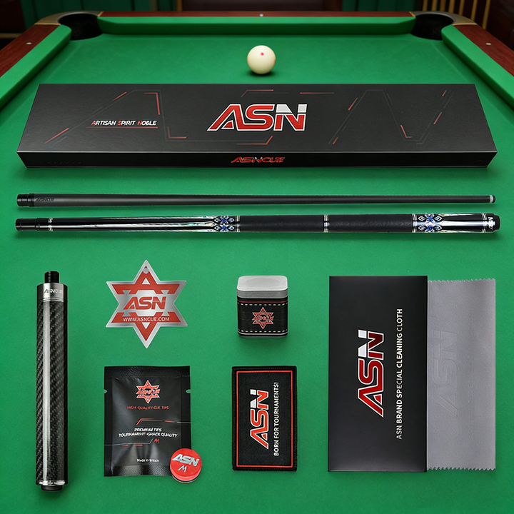 Juego Completo de Taco de Billar de Fibra de Carbono ASN WJTH-10 con Estuche, Extensión, Tiza, Punta y Paño de Limpieza, Equipo Profesional de Billar