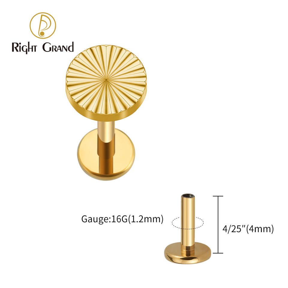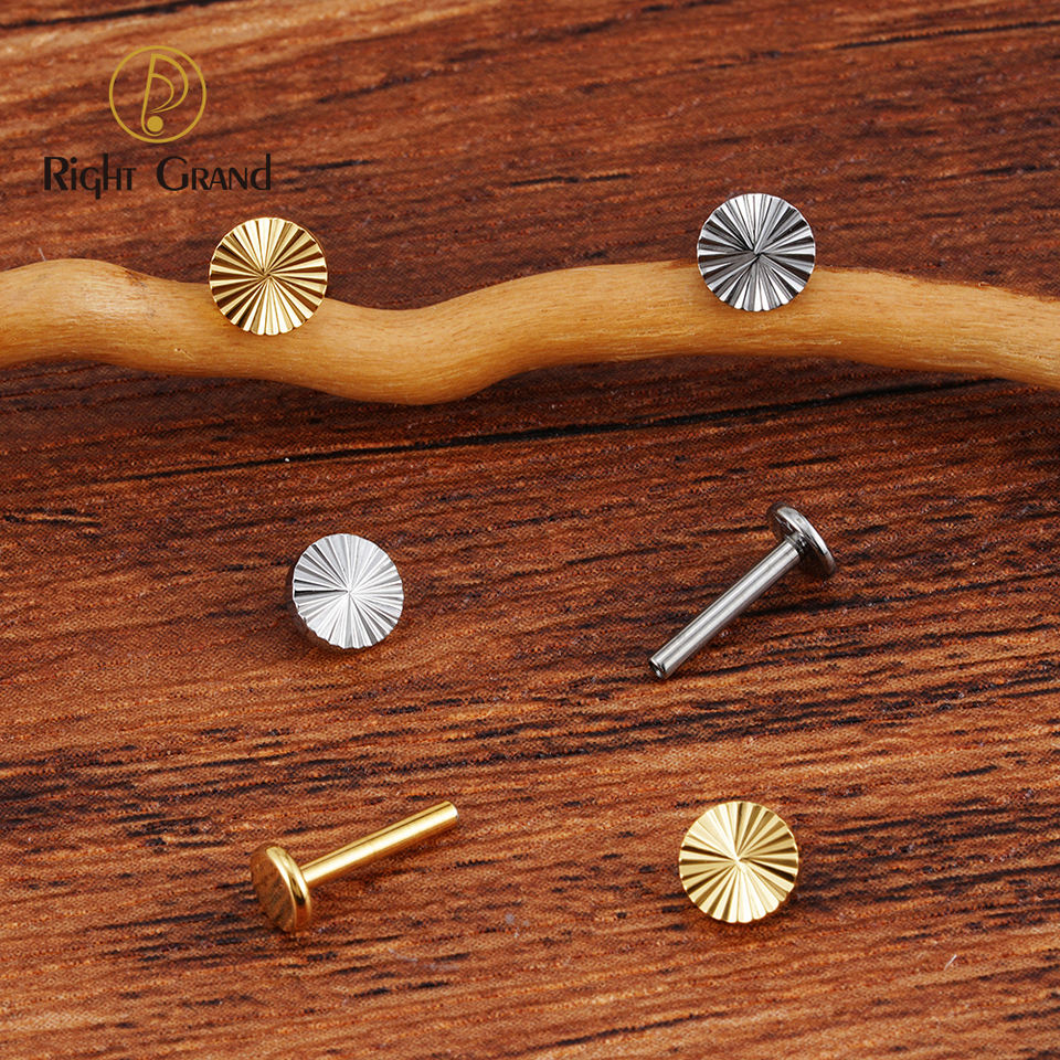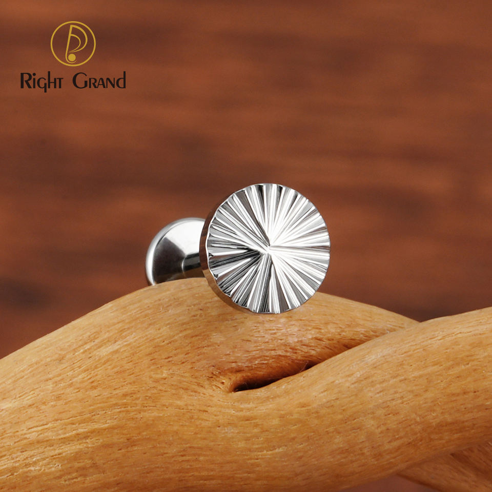 Piercing plano de titanio ASTM F136 16G con diseño geométrico de sector, tipo labret Monroe, para cartílago, tragus, hélix, concha