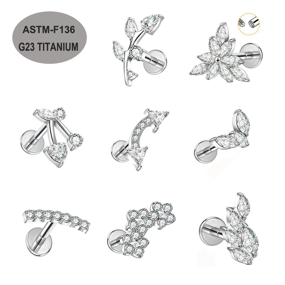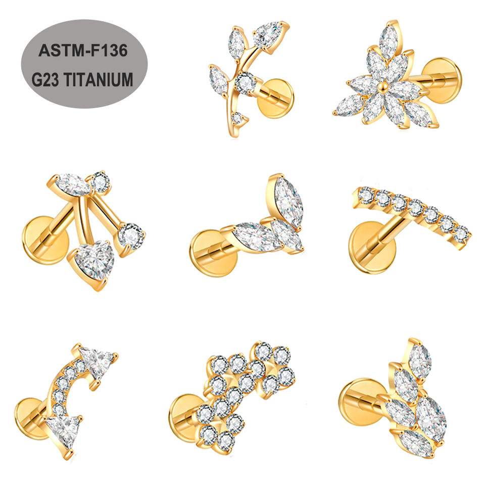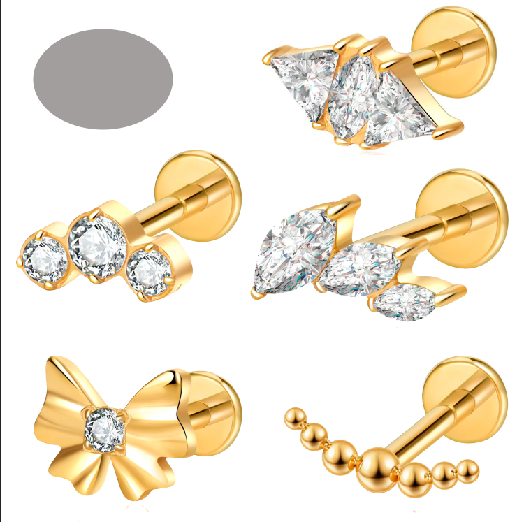 ASTM F136 titanio Labret anillo bisel conjunto oro plata labio Piercing Tragus pendientes cuerpo joyería mujeres hombres boda compromiso regalo