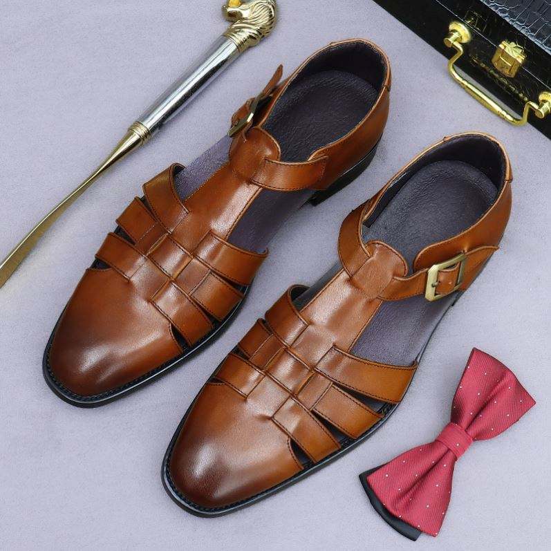 Sandalias ASTON M.JAZZ para Todas las Estaciones, Diseño Abierto, Parte Superior de Cuero Genuino, Transpirables, Cierre de Velcro, Diseño de Patchwork